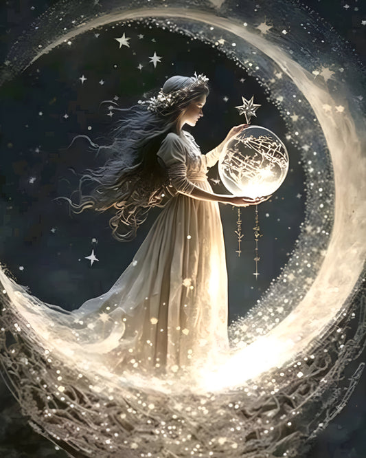 Hada con luna 40 x 50cm contiene Diamante gelatina brillante en la oscuridad, ab y polvo de hada
